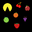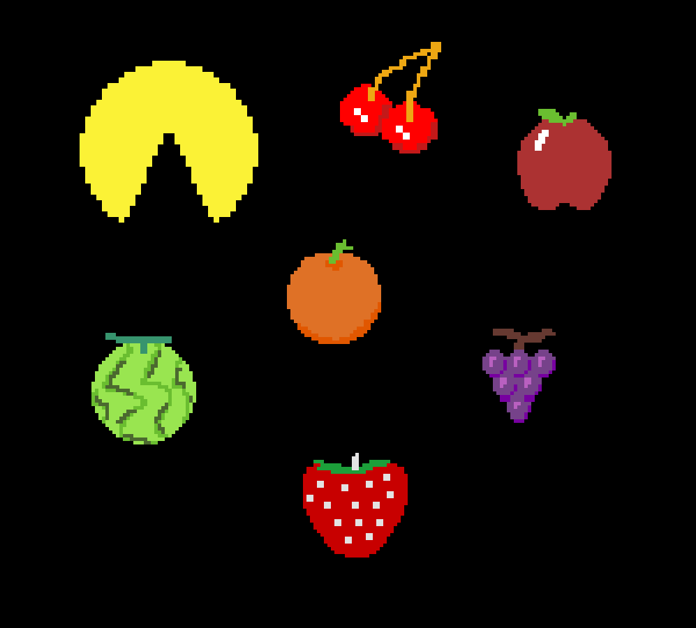 Game Instructions: Collect the fruit to increase your score, while dodging projectiles to last as long as possible. While red, you are invulnerable, but cannot regenerate; while blue, you are vulnerable to the attacks, but can regenerate.